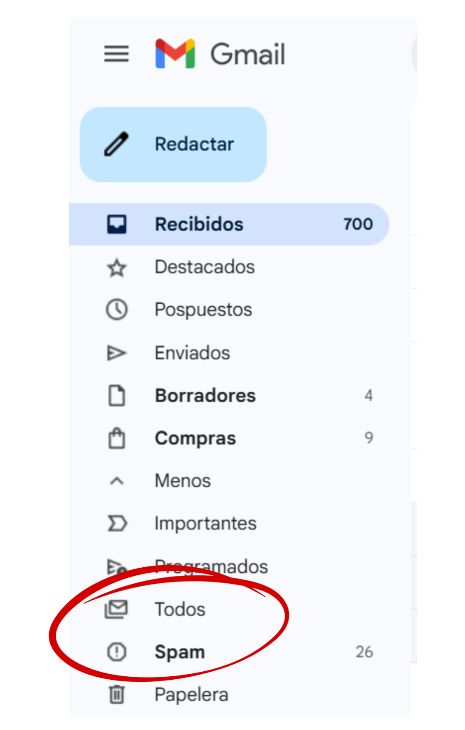 Recuerda que en caso de no encontrar el correo en tu bandeja principal, revisa en tus BANDEJAS "TODOS" O "SPAM"